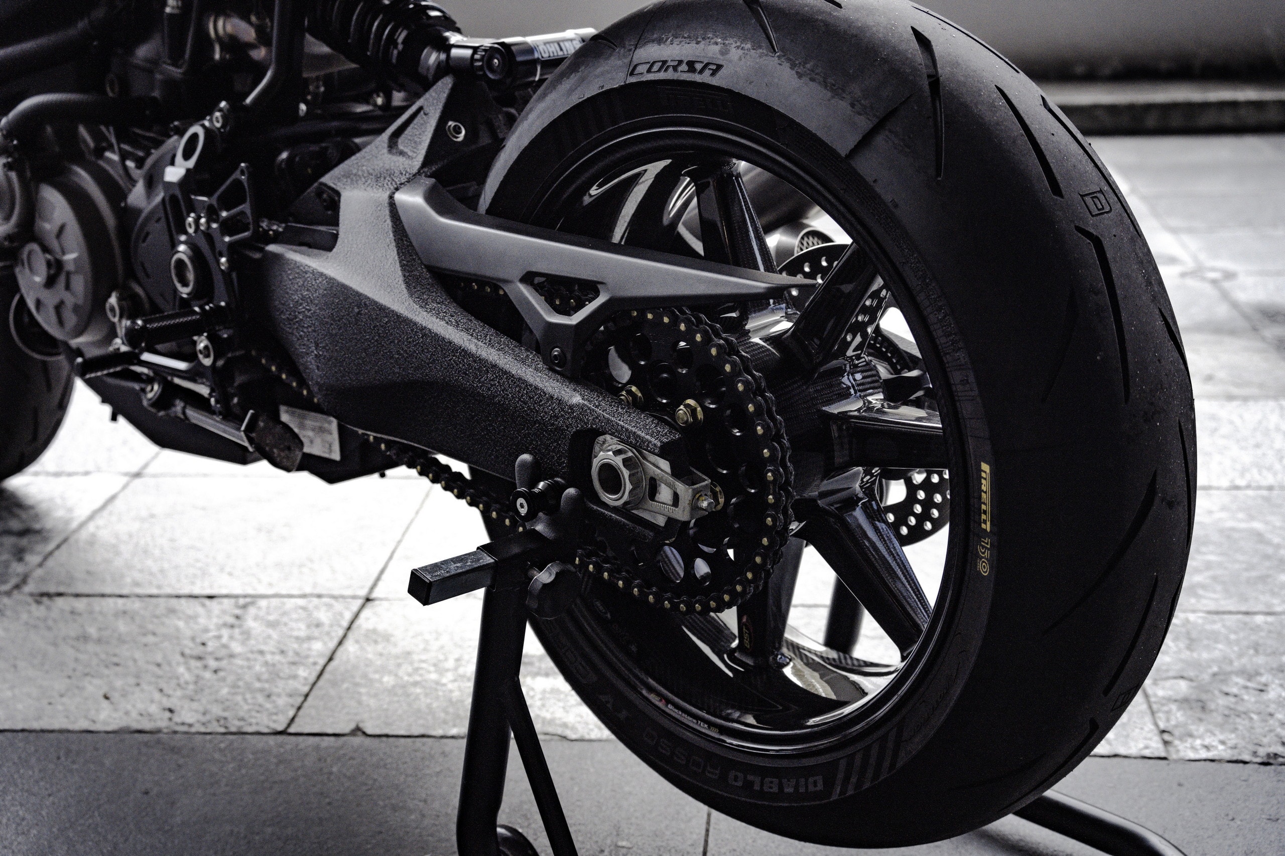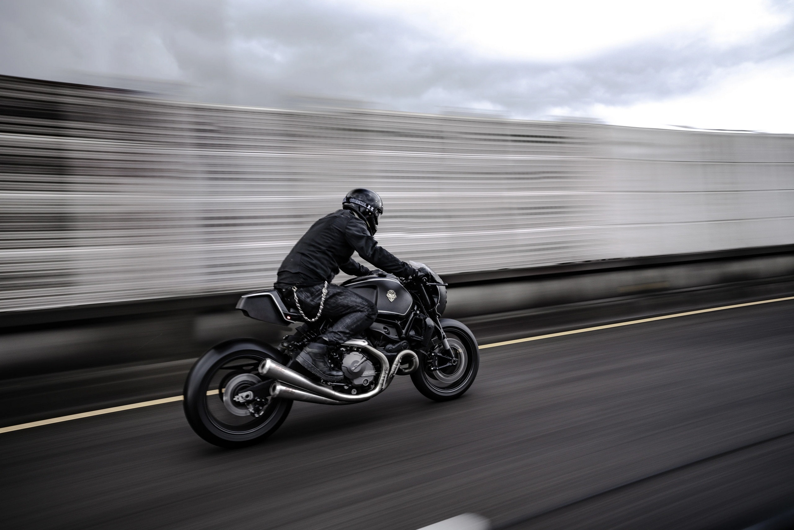 It is a stainless-steel item from SC-Project, running a two-one-two configuration and flowing beautifully from front to back. For the finishing touches, the Bologna Dogfight gained some carbon fiber inlays and a whole load of gloss- and matte-black paint. Contrasting white pinstripes are present on the bodywork, but the bike’s color scheme is a stealthy, murdered-out affair for the most part.