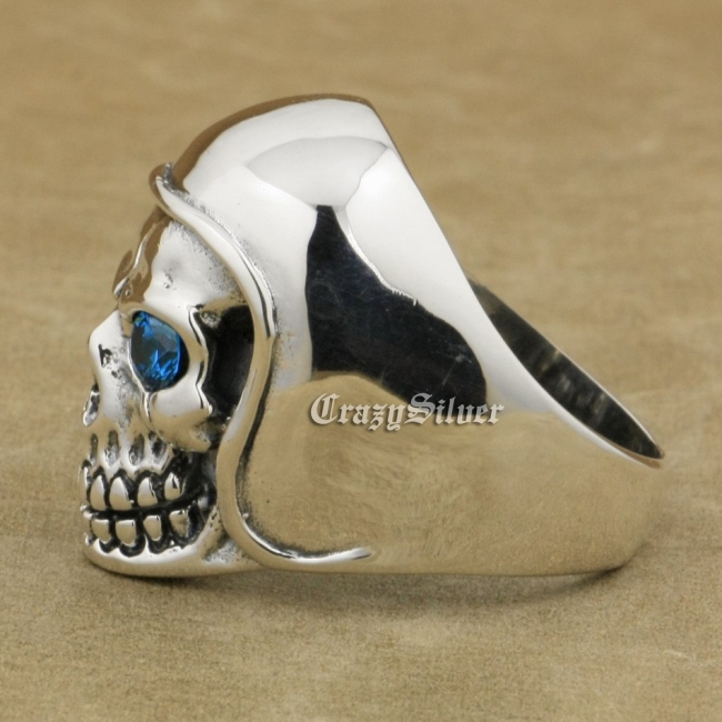 Men's Sterling Silver Gem Stone Helmeted Skull