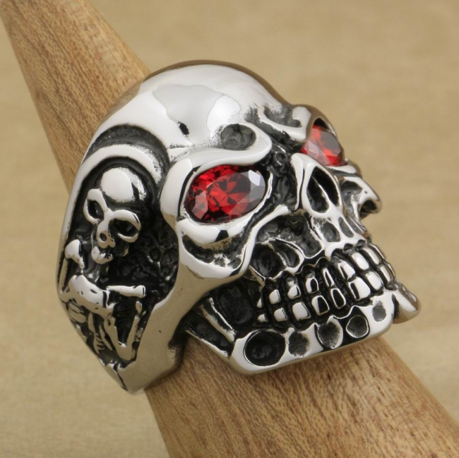 Huge Heavy Duty Stainless Steel Red CZ Eyes Titan Skull Ring