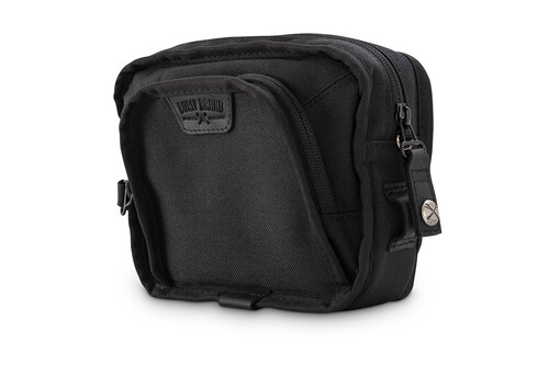 Burly Brand’s Handlebar Bag is a universal fit bag that can mount just about anywhere but finds itself at home on most T-Bar handlebar setups. Offered in their proprietary Dark Oak Wet Waxed UV treated cotton canvas or Black CORDURA® that will age and show character over time. Two exterior zipper pockets with generous interior space and elastic pockets feature YKK zippers secured with an“Anti-Flail Snap System” to keep everything in the bag secure.Mounts via 4 Velcro securing straps and MOLLE system.
