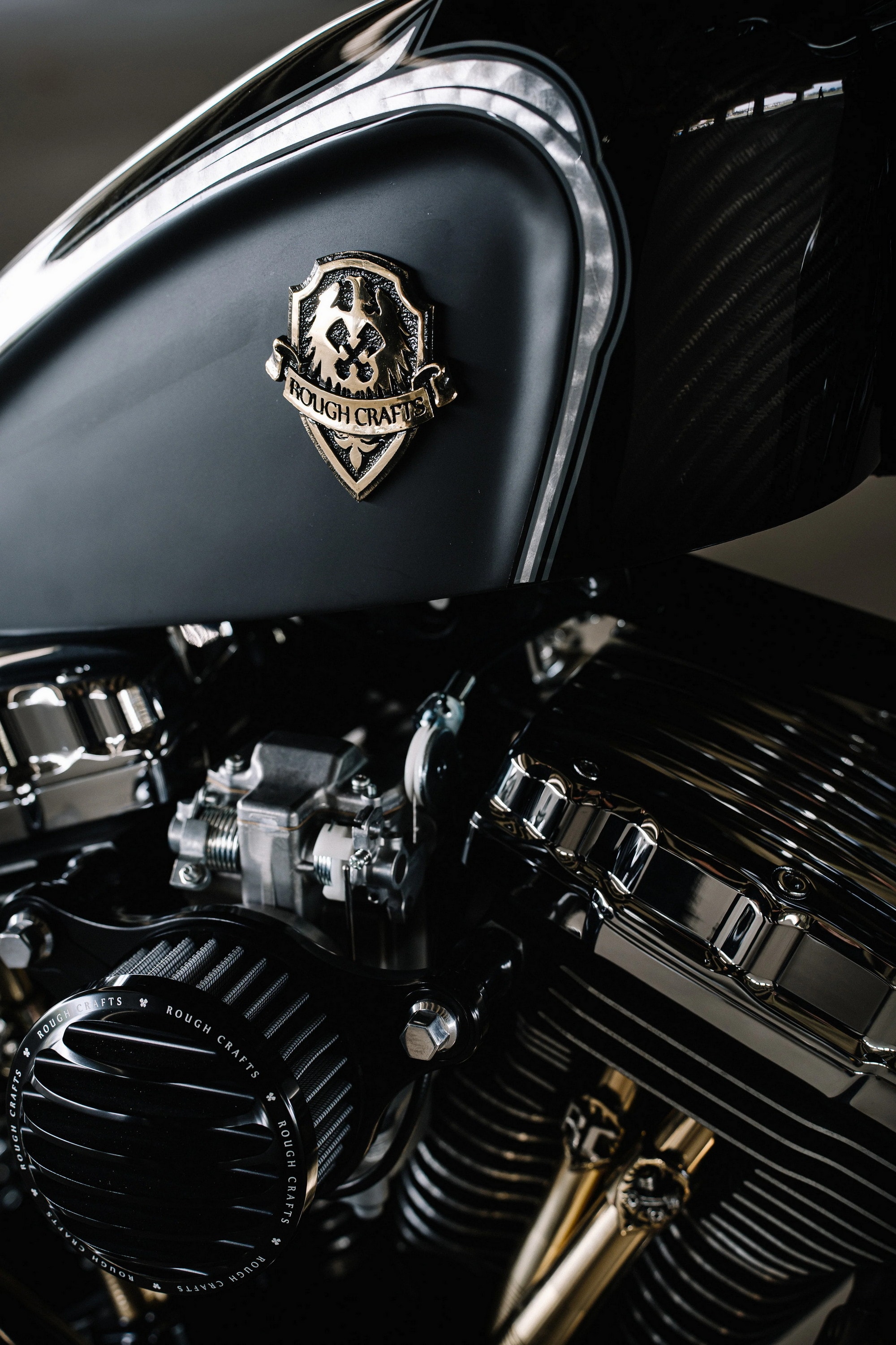 Air flows in through a high-grade aftermarket air cleaner, which is complemented by a custom two-into-one exhaust system made of stainless-steel. And lastly, Rough Crafts outsourced the paint job to Rover Works Custom Paint and Rebirth Sign Painter, while the various badges used throughout the Imperium Talon were fabricated by 2 Abnormal Sides. With these final touches out of the way, Winston wrapped things up and called it a day.