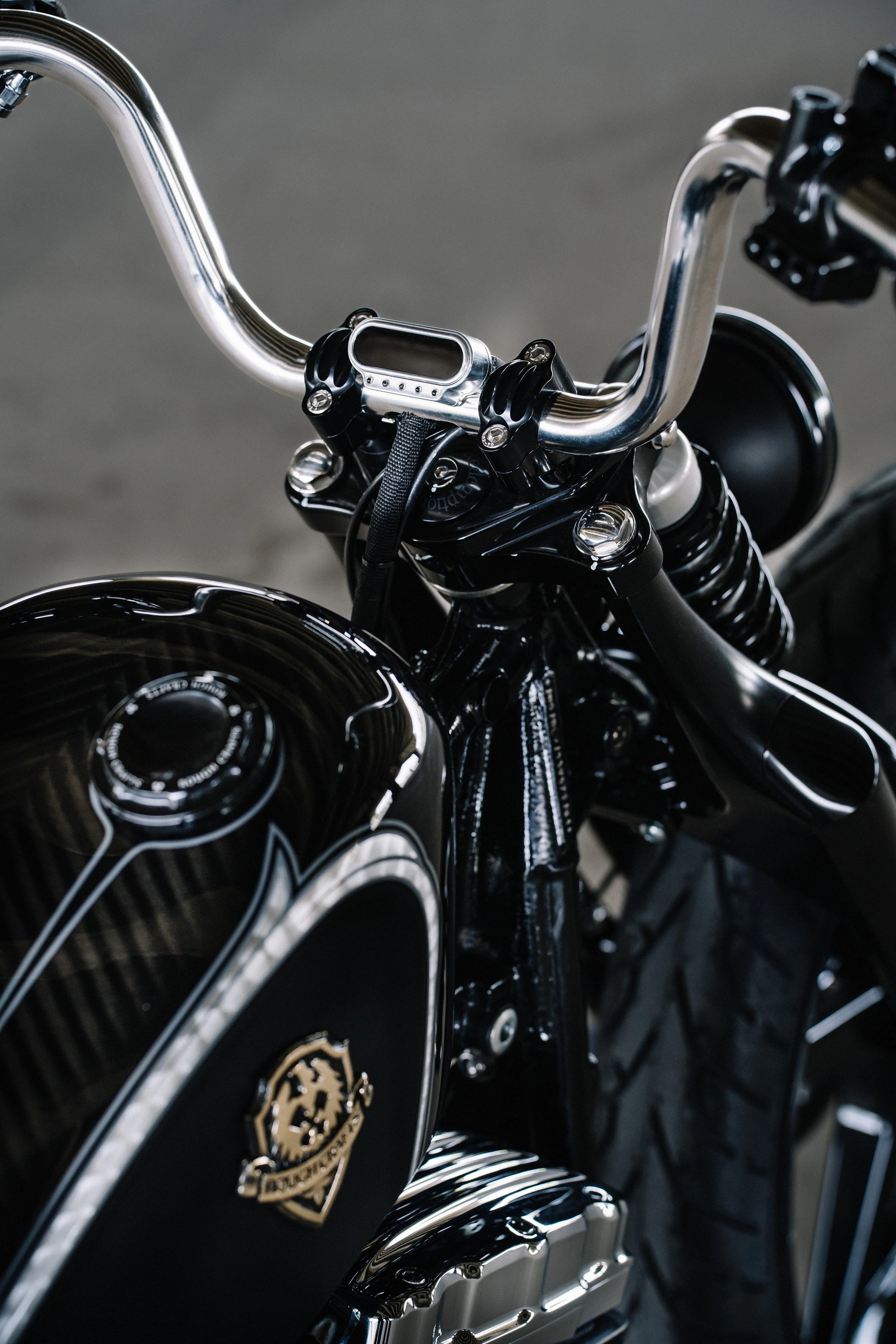 The bike had already been treated to an assortment of aftermarket bits under previous ownership, but Winston really dialed everything up to eleven. First things first, the Harley’s springer front end was ditched in favor of a billet aluminum arrangement from Rebuffini. It makes use of dual Ohlins shock absorbers, and the suspension upgrades continue at the opposite end.