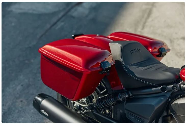 Aside from colors and graphics, the only other differentiator is the inclusion of locking rigid saddlebags, said to provide 10 gallons of waterproof storage. These saddlebags appear to be the same stubby bags featured on the Sport Chief RT, which will not fit a full-face helmet within them. Indian reps did note that the saddlebags are compatible with 2025–2026 Scout models as an accessory option.