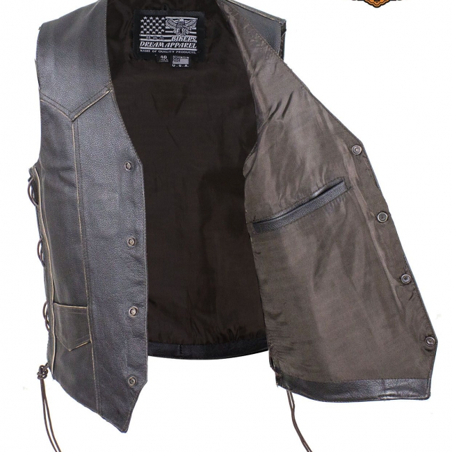 Native American’s have a deep passion for freedom and travel. We are proud to offer this Top Grade Genuine Leather Native American leather vest. Embossed with a Classic American Indian Headdress on the back, featuring roomy pockets and a sturdy four snap closure.